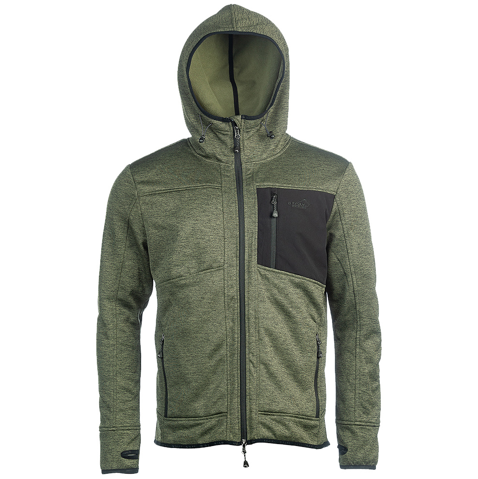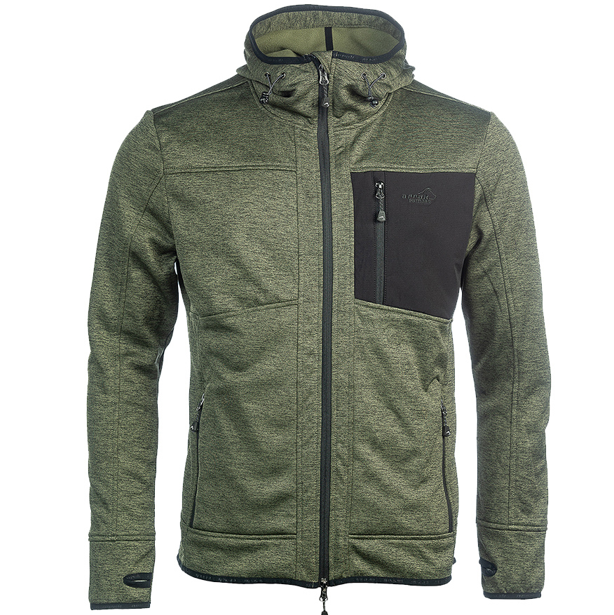 ARRAK SWEDEN Wildlife hood je pružná bunda s kapucí s česanou fleecovou stranou. Funguje skvěle jako dvouvrstvý oděv. 2cestný přední zip a náprsní kapsa a kapsy na ruce se zipem. Vzadu na zádech praktická zadní kapsa. Úchop palcem v rukávu. Využití: Příroda, rybaření, město.