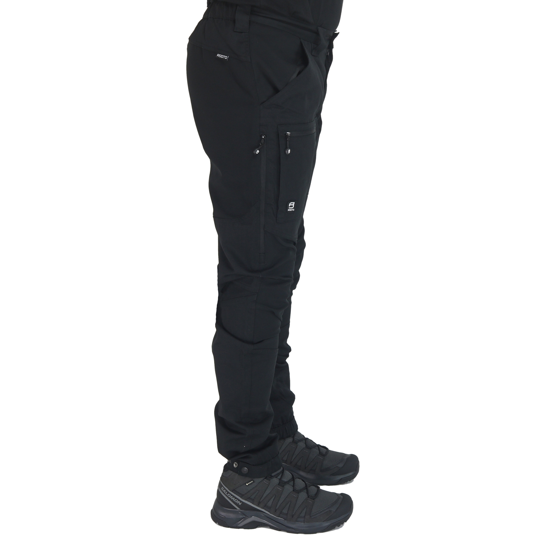 • detail Asoto Northsky pánske outdoor nohavice pohodlné čierne DWR vodoodpudivé Stretch