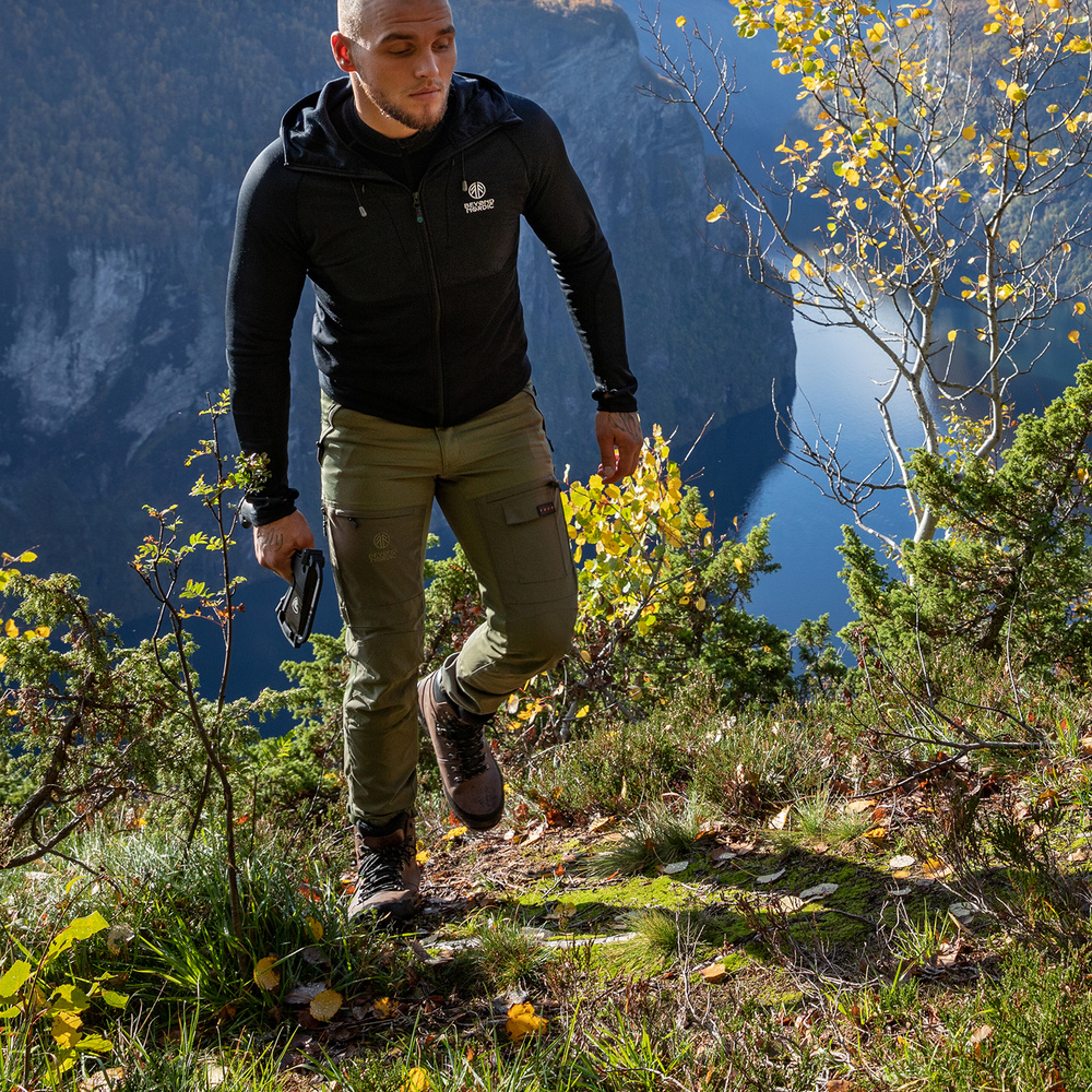 Turistické kalhoty B001 jsou nejprodávanější všestranné turistické kalhoty pro muže. Odolné outdoorové kalhoty moderního střihu vhodné pro turistiku, trekking, rybaření, lov a další outdoorové aktivity jako je zahradničení, venčení psů nebo hraní s rodinou na zahradě. Při výběru materiálů pro naše výrobky je důležitých mnoho faktorů. Hlavní důraz je kladen na pohodlí, odolnost, prodyšnost a chování v různých povětrnostních podmínkách. Turistické kalhoty Onyx BN001 jsou vyrobeny z ventilačního materiálu s vynikající prodyšností, 65% Polyester / 35% Bavlna, který je vybaven vodoodpudivým Teflon EcoElite® (impregnace DWR bez fluorouhlovodíků). Větrací otvory na vnější straně stehen. Vodoodpudivý a ventilační materiál. Celkem 6 kapes, z toho 5 na zip. Nastavitelné konce nohou ve 4 polohách. Kapsa s rozšířeným háčkem na zapínání nohavic pro upevnění kalhot na botě. Zesílená část stehen pro extrémní odolnost. Vícesmyčka pro zavěšení nástrojů.
