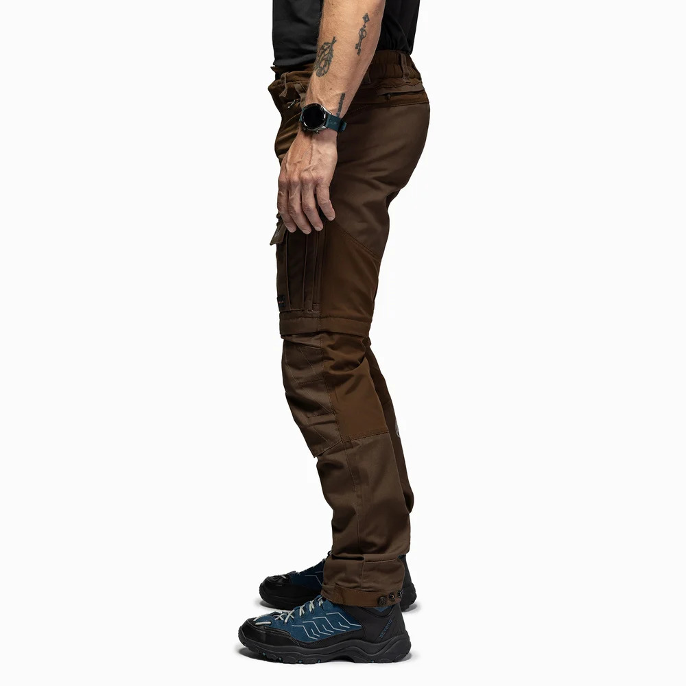 Turistické kalhoty B002 Zip-Off mají odepínací nohavice a jsou nejprodávanější všestranné turistické kalhoty pro muže. Odolné outdoorové kalhoty moderního střihu vhodné pro turistiku, trekking, rybaření, lov a další outdoorové aktivity jako je zahradničení, venčení psů nebo hraní s rodinou na zahradě. Při výběru materiálů pro naše výrobky je důležitých mnoho faktorů. Hlavní důraz je kladen na pohodlí, odolnost, prodyšnost a chování v různých povětrnostních podmínkách. Turistické kalhoty BN002 jsou vyrobeny z ventilačního materiálu s vynikající prodyšností, 65% Polyester / 35% Bavlna, který je vybaven vodoodpudivým Teflon EcoElite® (impregnace DWR bez fluorouhlovodíků). Větrací otvory na vnější straně stehen. Vodoodpudivý a ventilační materiál. Celkem 6 kapes, z toho 5 na zip. Nastavitelné konce nohou ve 4 polohách. Kapsa s rozšířeným háčkem na zapínání nohavic pro upevnění kalhot na botě. Zesílená část stehen pro extrémní odolnost. Vícesmyčka pro zavěšení nástrojů. RECCO systém pro Vaše bezpečí. Bezpečnost pobytu v přírodě je nesmírně důležitá, a proto používáme technologii RECCO. Tento oděv je implantován s reflexním čipem RECCO, díky kterému budou moci prohledávat profesionální záchranné týmy po celém světě vzdušnou nebo pozemní cestou v případě nehody nebo pokud se ztratíte v přírodě. Reflektory RECCO jsou lehké a ke své funkci nevyžadují žádné napájení ani aktivaci. Jsou navrženy tak, aby vydržely po celý život a nestárly ani se neopotřebovávaly.