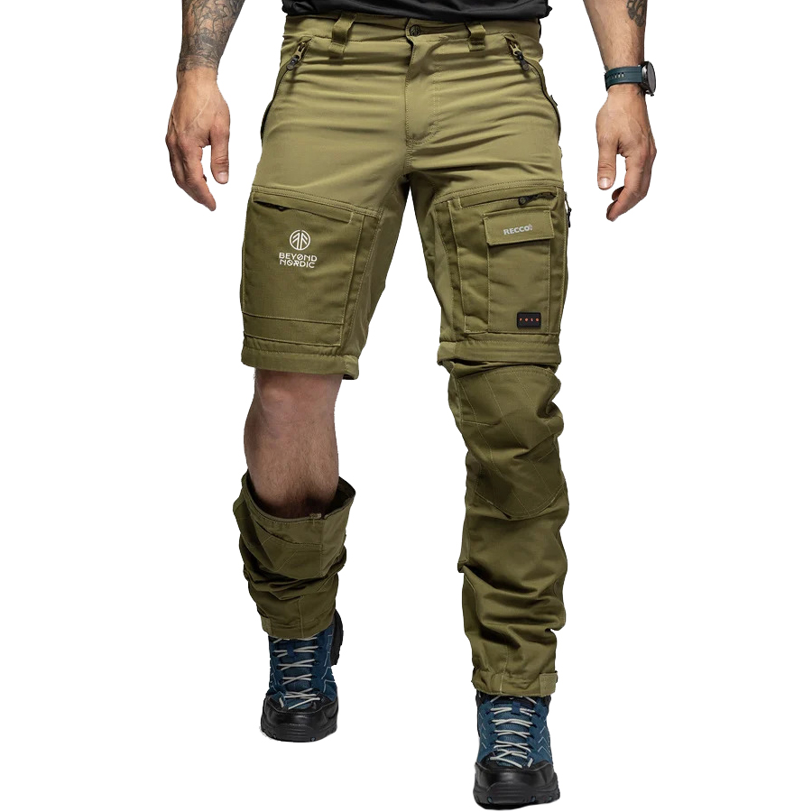 Turistické kalhoty B002 Zip-Off mají odepínací nohavice a jsou nejprodávanější všestranné turistické kalhoty pro muže. Odolné outdoorové kalhoty moderního střihu vhodné pro turistiku, trekking, rybaření, lov a další outdoorové aktivity jako je zahradničení, venčení psů nebo hraní s rodinou na zahradě. Při výběru materiálů pro naše výrobky je důležitých mnoho faktorů. Hlavní důraz je kladen na pohodlí, odolnost, prodyšnost a chování v různých povětrnostních podmínkách. Turistické kalhoty BN002 jsou vyrobeny z ventilačního materiálu s vynikající prodyšností, 65% Polyester / 35% Bavlna, který je vybaven vodoodpudivým Teflon EcoElite® (impregnace DWR bez fluorouhlovodíků). Větrací otvory na vnější straně stehen. Vodoodpudivý a ventilační materiál. Celkem 6 kapes, z toho 5 na zip. Nastavitelné konce nohou ve 4 polohách. Kapsa s rozšířeným háčkem na zapínání nohavic pro upevnění kalhot na botě. Zesílená část stehen pro extrémní odolnost. Vícesmyčka pro zavěšení nástrojů. RECCO systém pro Vaše bezpečí. Bezpečnost pobytu v přírodě je nesmírně důležitá, a proto používáme technologii RECCO. Tento oděv je implantován s reflexním čipem RECCO, díky kterému budou moci prohledávat profesionální záchranné týmy po celém světě vzdušnou nebo pozemní cestou v případě nehody nebo pokud se ztratíte v přírodě. Reflektory RECCO jsou lehké a ke své funkci nevyžadují žádné napájení ani aktivaci. Jsou navrženy tak, aby vydržely po celý život a nestárly ani se neopotřebovávaly.