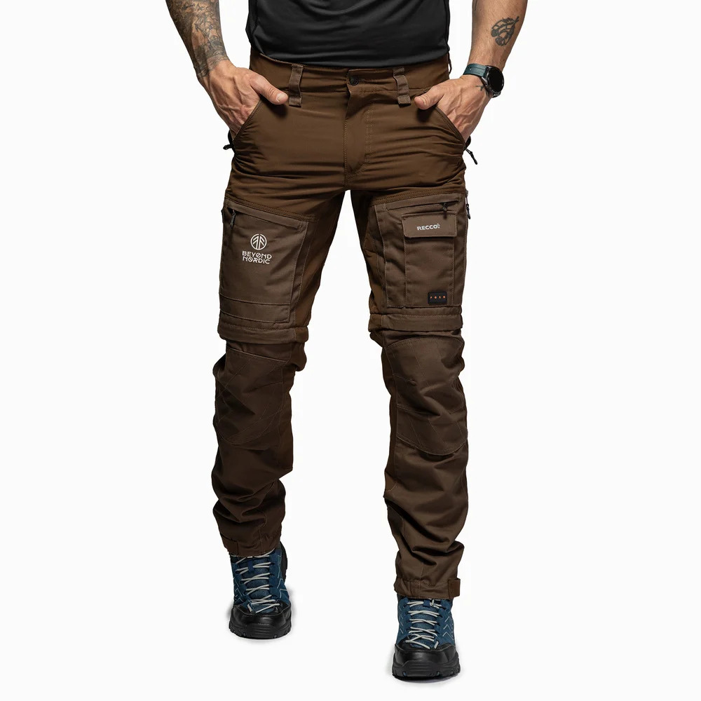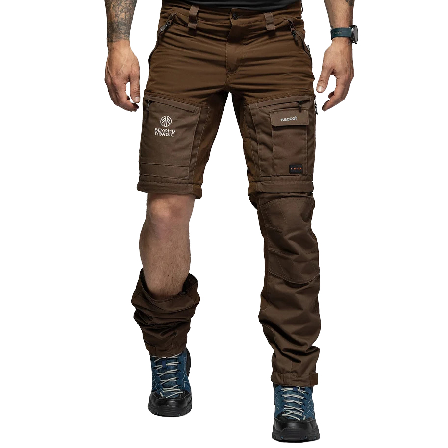 Turistické kalhoty B002 Zip-Off mají odepínací nohavice a jsou nejprodávanější všestranné turistické kalhoty pro muže. Odolné outdoorové kalhoty moderního střihu vhodné pro turistiku, trekking, rybaření, lov a další outdoorové aktivity jako je zahradničení, venčení psů nebo hraní s rodinou na zahradě. Při výběru materiálů pro naše výrobky je důležitých mnoho faktorů. Hlavní důraz je kladen na pohodlí, odolnost, prodyšnost a chování v různých povětrnostních podmínkách. Turistické kalhoty BN002 jsou vyrobeny z ventilačního materiálu s vynikající prodyšností, 65% Polyester / 35% Bavlna, který je vybaven vodoodpudivým Teflon EcoElite® (impregnace DWR bez fluorouhlovodíků). Větrací otvory na vnější straně stehen. Vodoodpudivý a ventilační materiál. Celkem 6 kapes, z toho 5 na zip. Nastavitelné konce nohou ve 4 polohách. Kapsa s rozšířeným háčkem na zapínání nohavic pro upevnění kalhot na botě. Zesílená část stehen pro extrémní odolnost. Vícesmyčka pro zavěšení nástrojů. RECCO systém pro Vaše bezpečí. Bezpečnost pobytu v přírodě je nesmírně důležitá, a proto používáme technologii RECCO. Tento oděv je implantován s reflexním čipem RECCO, díky kterému budou moci prohledávat profesionální záchranné týmy po celém světě vzdušnou nebo pozemní cestou v případě nehody nebo pokud se ztratíte v přírodě. Reflektory RECCO jsou lehké a ke své funkci nevyžadují žádné napájení ani aktivaci. Jsou navrženy tak, aby vydržely po celý život a nestárly ani se neopotřebovávaly.