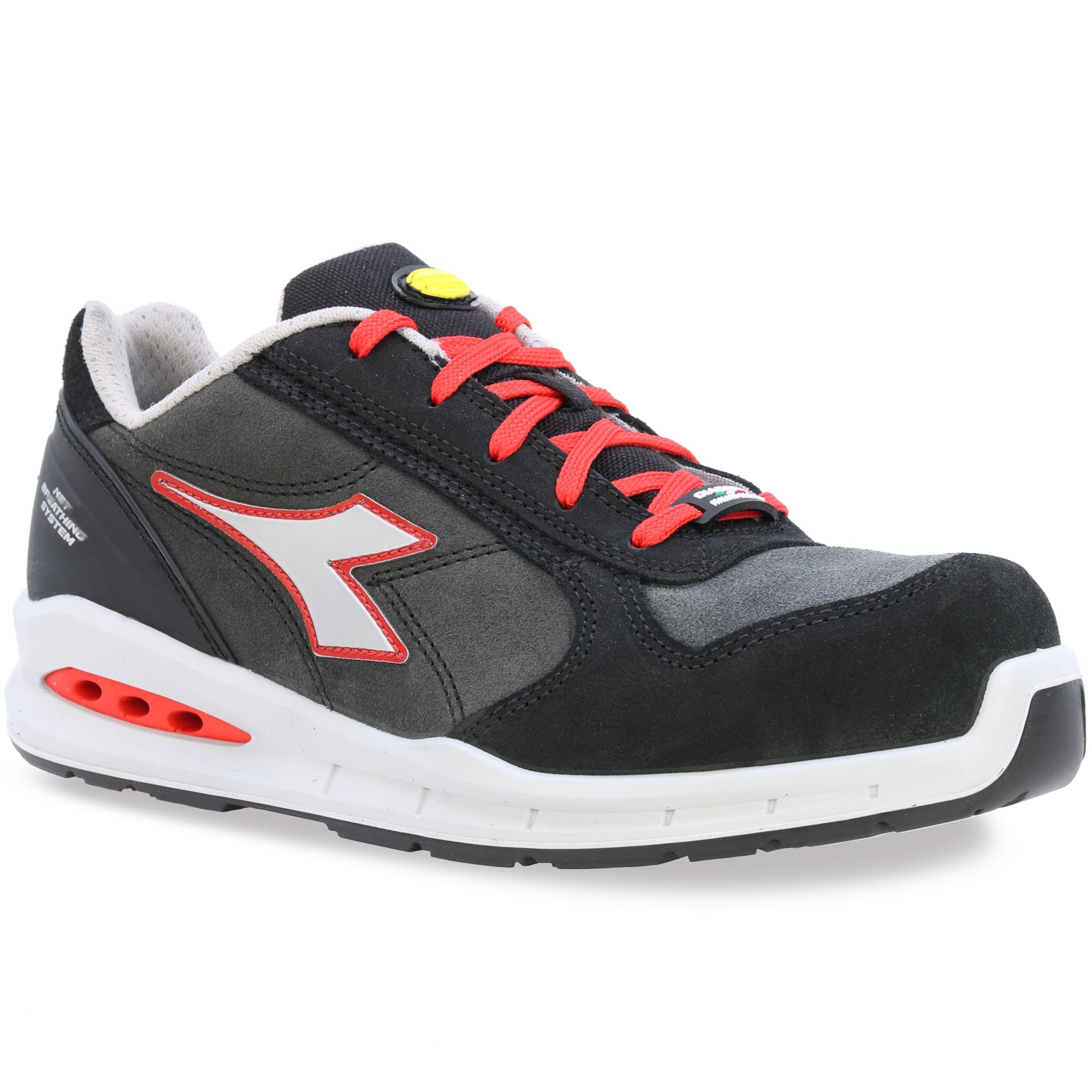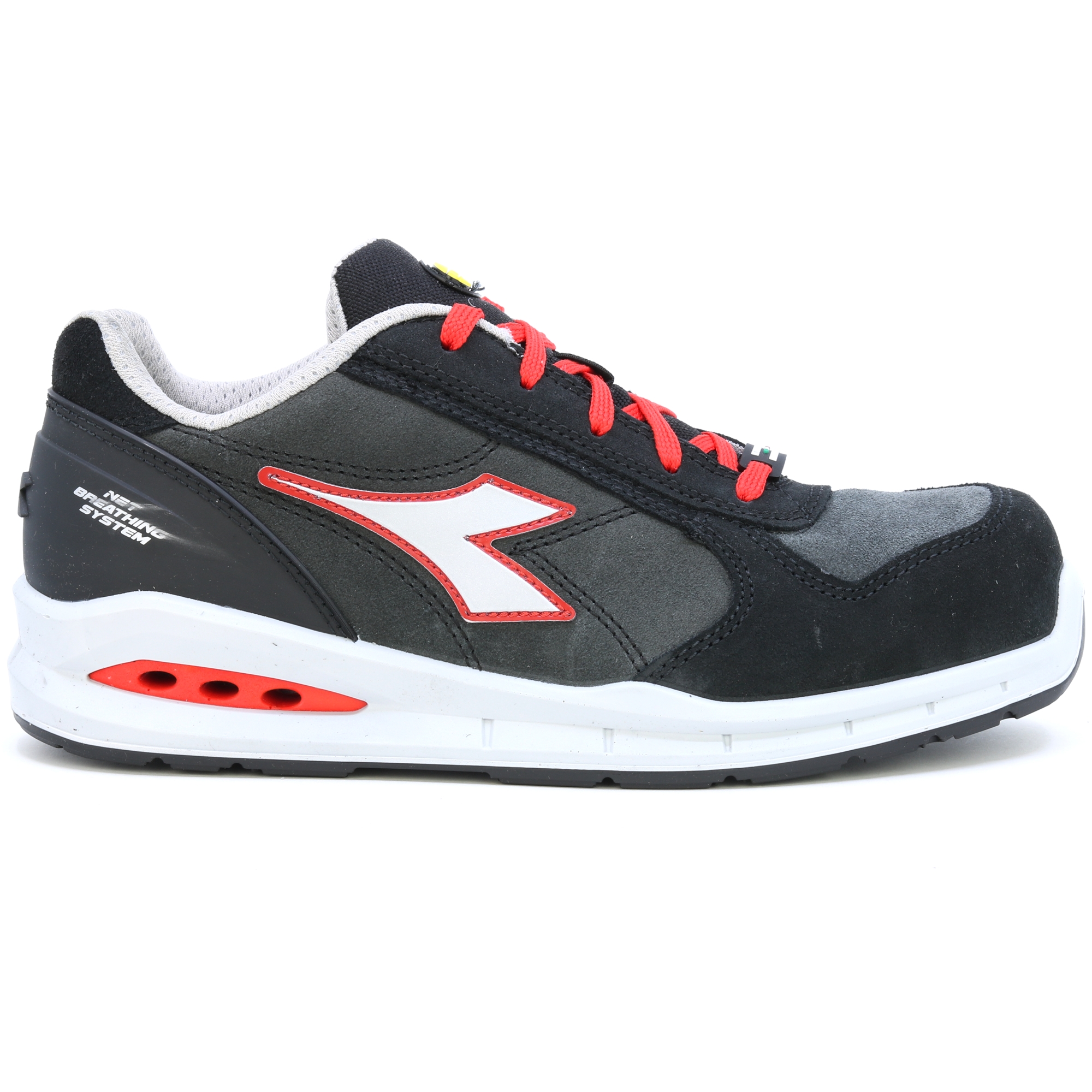 Pracovní bota, která dýchá! Nízká bezpečnostní obuv S3 ze semišové kůže, vodoodpudivá a prodyšná s Net Breathing System od Geox na bocích. K SOLE, Nylonová oděruvzdorná a ultraprodyšná podšívka, vyjímatelná a prodyšná stélka s aktivním uhlím. Geox system podporuje proudění vzduchu z obuvi ven a zabraňuje pocení chodidla. DÝCHACÍ SYSTÉM OD GEOX - AIRBOX: Diadora Utility rozšiřuje svou řadu produktů NET DÝCHACÍ SYSTÉM (licencovaný společností GEOX) a zavádí vlastní patentovanou technologii. Tato exkluzivní řada, vyvinutá ve výzkumných laboratořích Diadora, představuje dokonalost v oblasti inovací a designu. Tyto boty nechávají nohu volně dýchat a nabízejí maximální pohodlí v každé situaci. Inovativní boční poloha ventilačních otvorů v nové konstrukci Airbox zajišťuje bezkonkurenční prodyšnost. Speciální membrána GEOX Diadora byla nyní dále vylepšena přidáním otvorů po stranách, které zajišťují maximální prodyšnost pro nohu a zároveň zůstávají v dokonalé harmonii s ochrannými prvky, které tvoří botu. Výzkum potvrdil, že tato membrána – která obsahuje drobné dírky nebo „mikropóry“, které jsou menší než kapka vody, ale větší než molekula vodní páry – zabraňuje pronikání vody do boty a zároveň zajišťuje, že noha zůstane suchá.