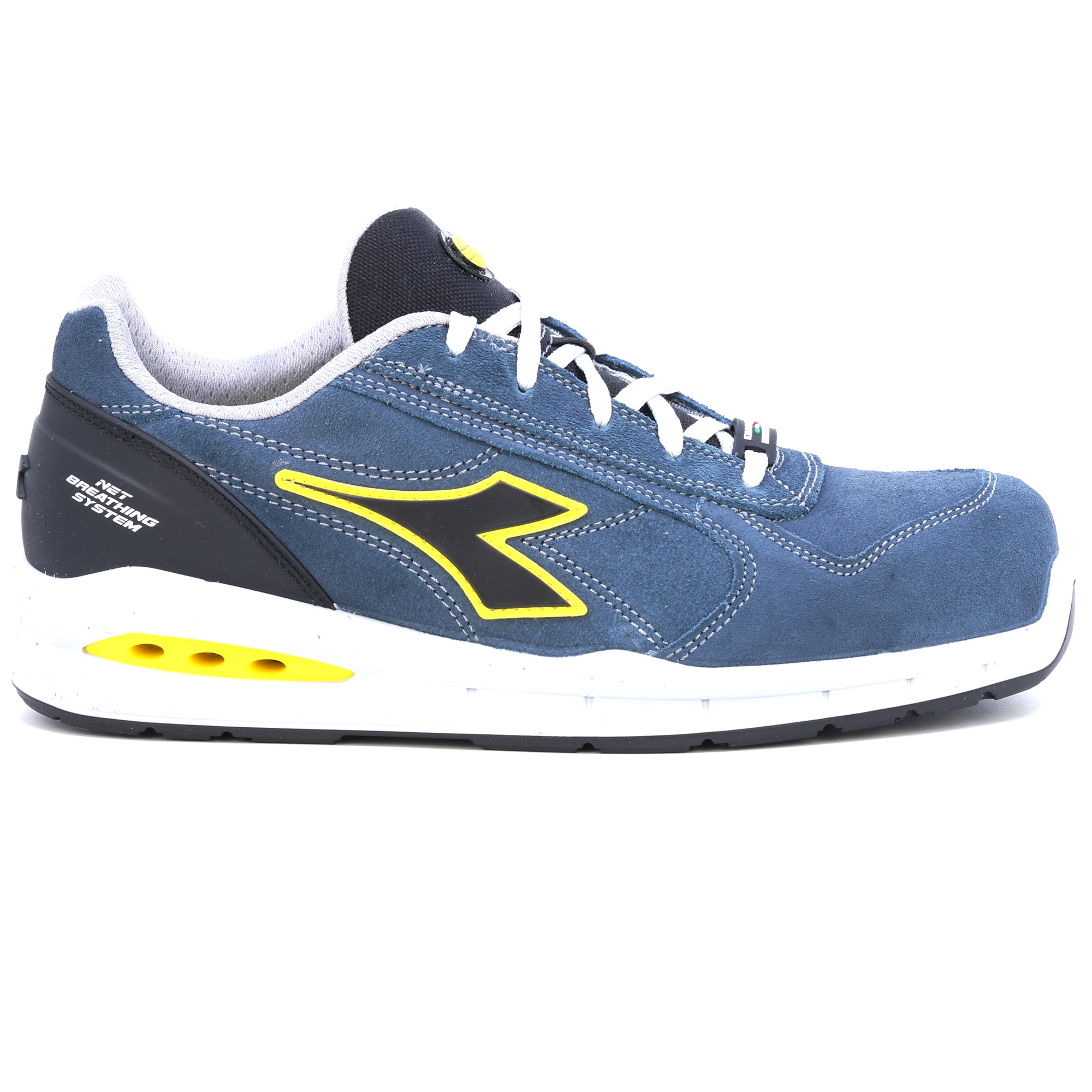 Pracovní bota, která dýchá! Nízká bezpečnostní obuv S3 ze semišové kůže, vodoodpudivá a prodyšná s Net Breathing System od Geox na bocích. K SOLE, Nylonová oděruvzdorná a ultraprodyšná podšívka, vyjímatelná a prodyšná stélka s aktivním uhlím. Geox system podporuje proudění vzduchu z obuvi ven a zabraňuje pocení chodidla. DÝCHACÍ SYSTÉM OD GEOX - AIRBOX: Diadora Utility rozšiřuje svou řadu produktů NET DÝCHACÍ SYSTÉM (licencovaný společností GEOX) a zavádí vlastní patentovanou technologii. Tato exkluzivní řada, vyvinutá ve výzkumných laboratořích Diadora, představuje dokonalost v oblasti inovací a designu. Tyto boty nechávají nohu volně dýchat a nabízejí maximální pohodlí v každé situaci. Inovativní boční poloha ventilačních otvorů v nové konstrukci Airbox zajišťuje bezkonkurenční prodyšnost. Speciální membrána GEOX Diadora byla nyní dále vylepšena přidáním otvorů po stranách, které zajišťují maximální prodyšnost pro nohu a zároveň zůstávají v dokonalé harmonii s ochrannými prvky, které tvoří botu. Výzkum potvrdil, že tato membrána – která obsahuje drobné dírky nebo „mikropóry“, které jsou menší než kapka vody, ale větší než molekula vodní páry – zabraňuje pronikání vody do boty a zároveň zajišťuje, že noha zůstane suchá.