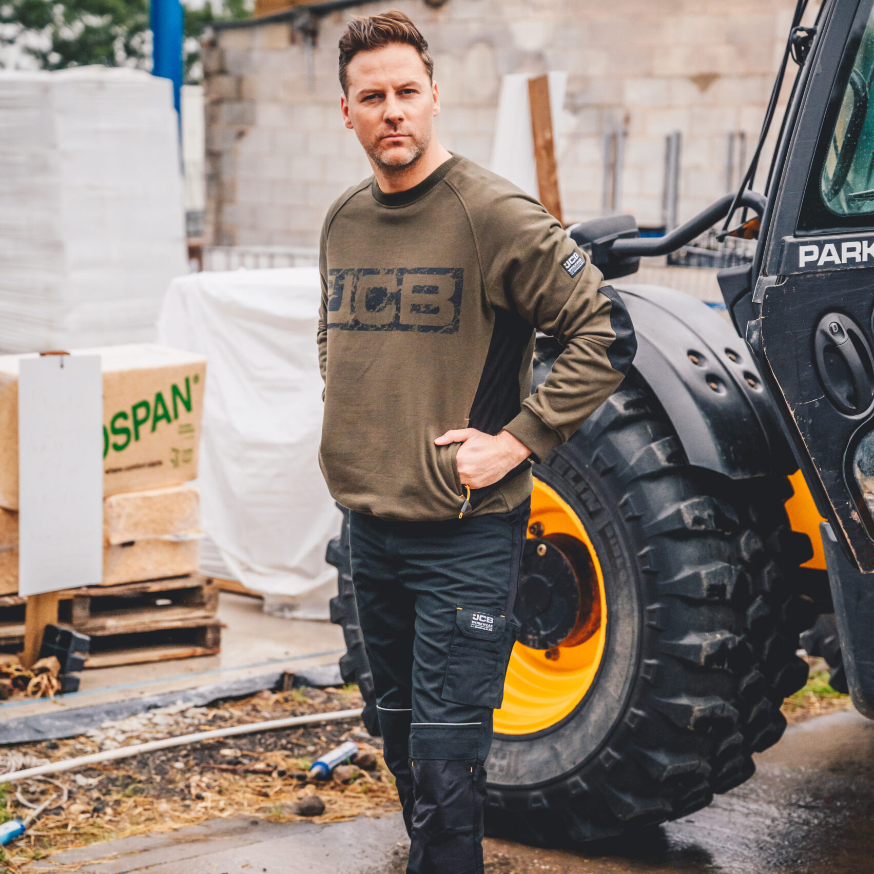 JCB Trade Crew olivová pánská pracovní mikina