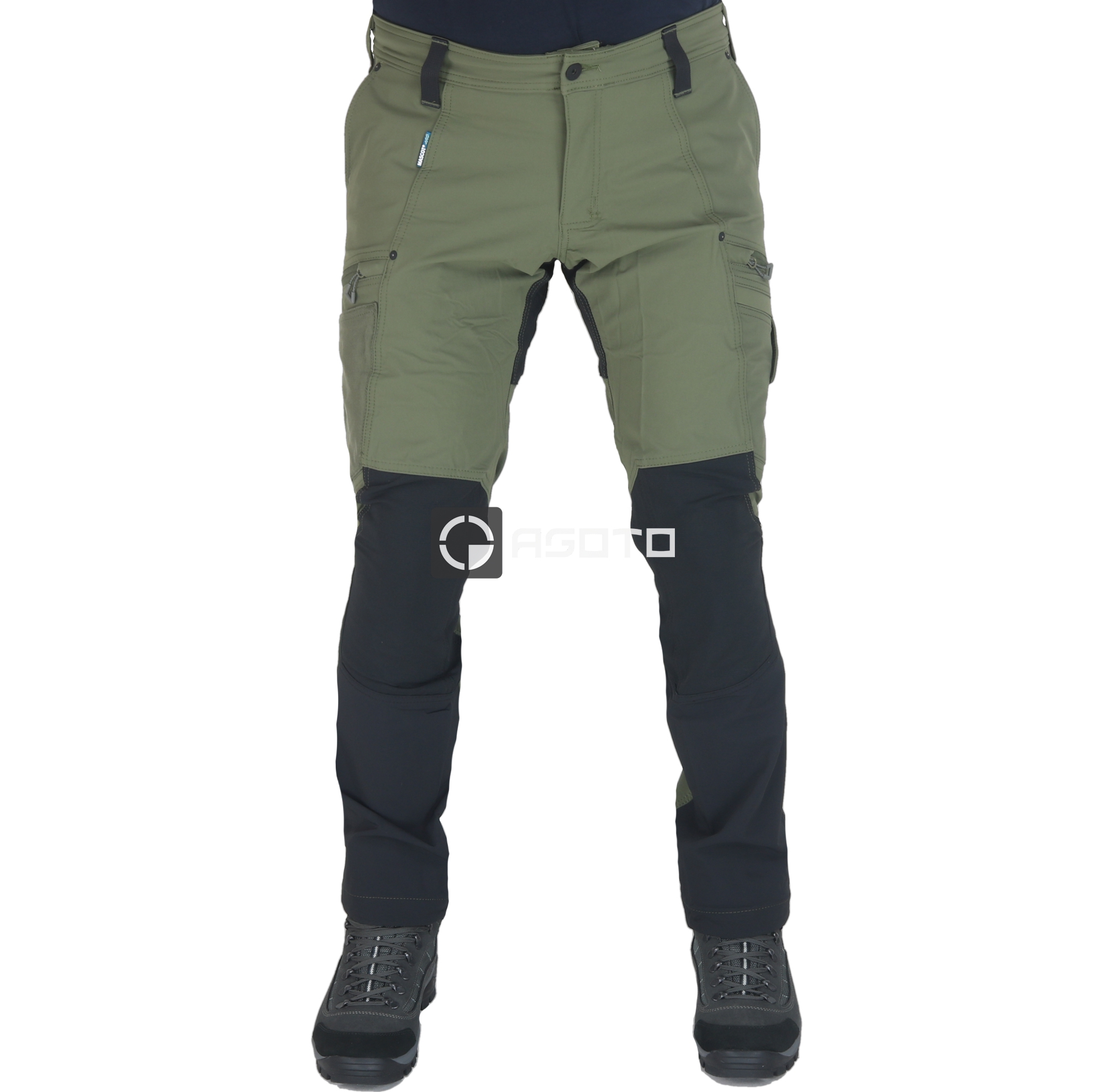• detail MASCOT Ultimate Stretch olivové pánské prémiové kalhoty Water-Repellent