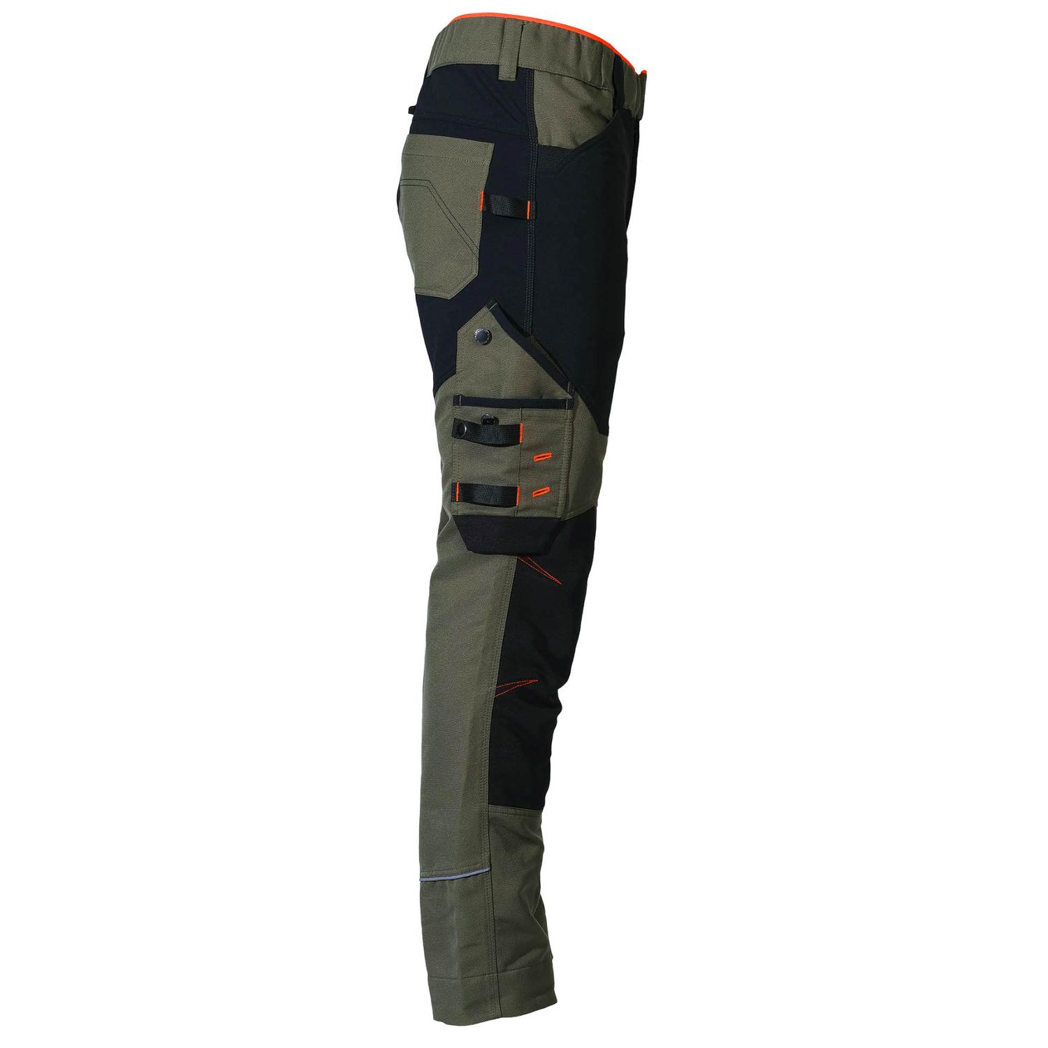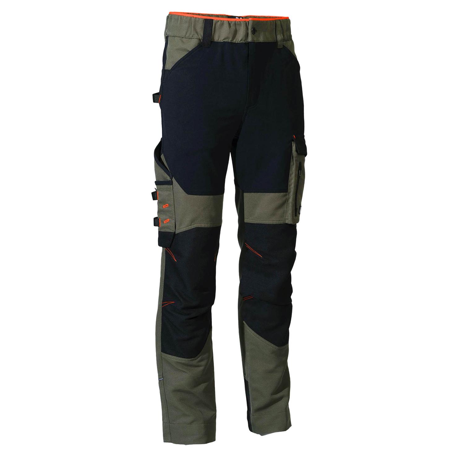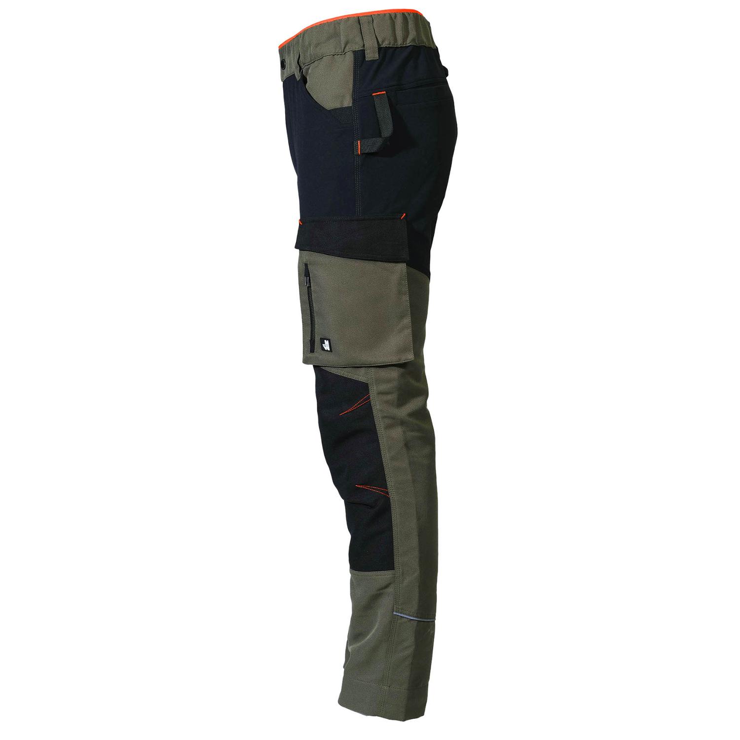 Tyto odolné a funkční pracovní kalhoty kombinují lehkost, pružnost a maximální komfort pro náročné pracovní podmínky. Hlavní materiál tvoří pevná směs 88 % polyesteru a 12 % bavlny v jacquardové vazbě s gramáží 220 g/m2, zatímco zesílené části na kolenou a kotnících jsou vyrobeny z pružné tkaniny (93 % polyamid, 7 % elastan, 230 g/m2), která poskytuje větší odolnost proti oděru a zároveň neomezuje v pohybu. Zvýšený zadní díl zajišťuje lepší krytí a pohodlí při práci. Kalhoty jsou vybaveny šesti praktickými kapsami, včetně dvou elastických italských kapes, kapsy s klínem, raglánové kapsy, našité kapsy a speciální kapsy na skládací metr. Nechybí ani držák na nůž, poutko na svinovací metr a smyčka na nářadí. Trojité prošití zaručuje pevnost a dlouhou životnost, zatímco reflexní detaily zlepšují viditelnost za zhoršených světelných podmínek. Elastický pas s kontrastním detailem a nastavitelný lem nohavic přispívají k maximálnímu pohodlí a individuálnímu přizpůsobení. Ideální volba pro každého profesionála, který hledá odolnost, funkčnost a moderní vzhled v jednom.