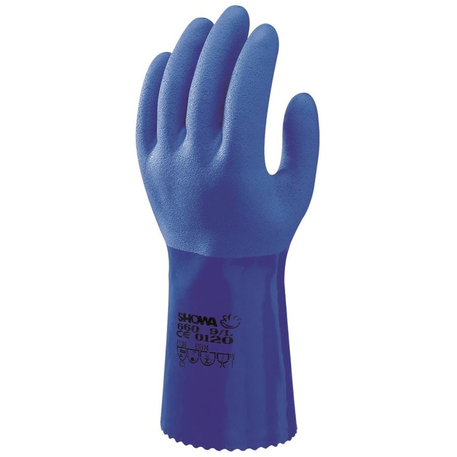 Máčené rukavice v PVC s chemickou odolností EN374