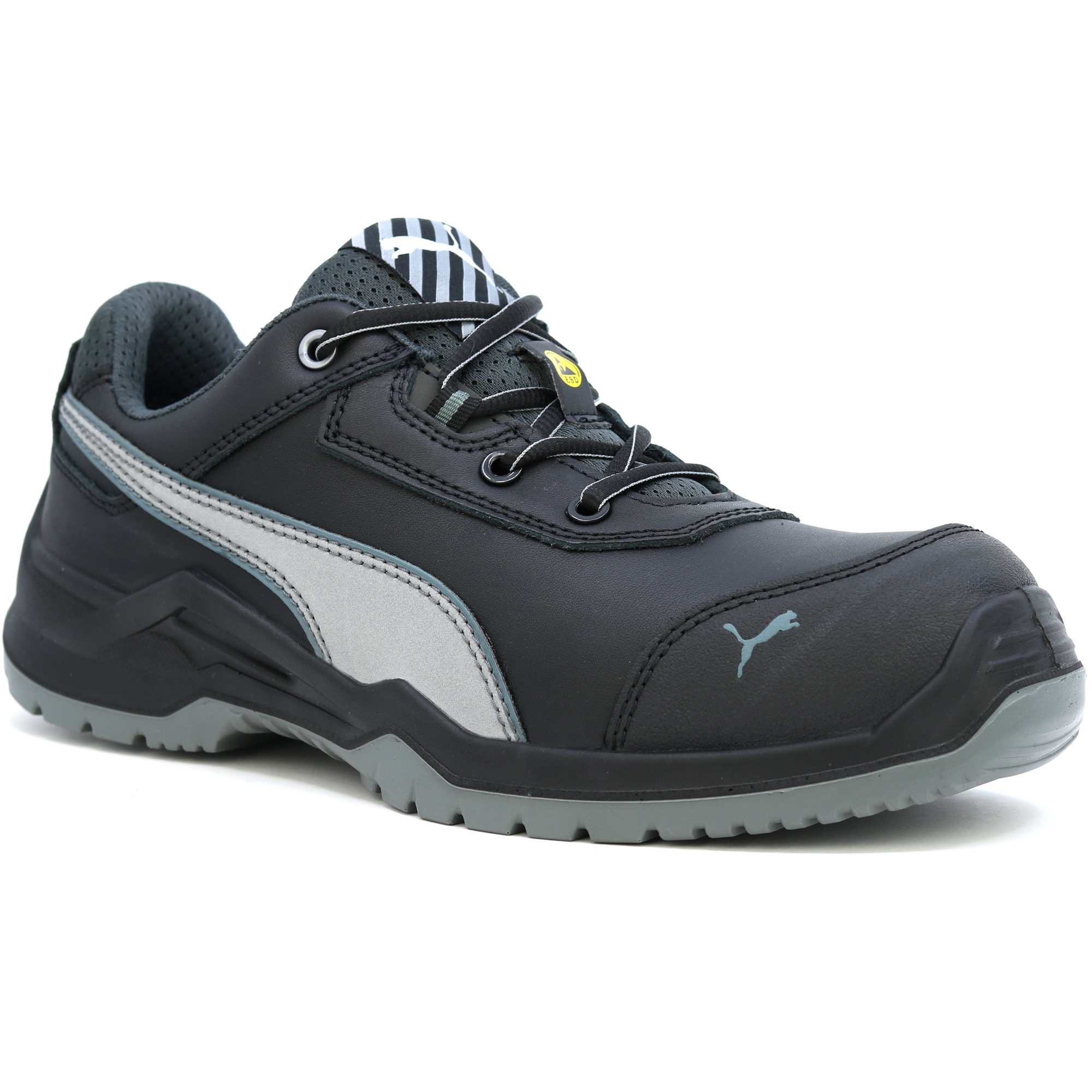 Bezkovový ARGON RX LOW s vysoce reflexním PUMA logem z boku celé obuvi. TECHNICS LINE se vyznačuje vysokou flexibilitou a nápadnou lehkou konstrukcí. Toho je dosaženo přirozenou architekturou jediným FLEXMOTION®. Kombinuje koncept „přirozeného běhu“ s nejnovější technologií pro bezpečnostní obuv. Bezpečnostní obuv S3 s charakteristikami ESD ploché celozrnné kůže je vybavena vysoce odolnou ocelovou čepičkou a ochranou proti perforaci FAP®. Vložená stélka Evercushion® BA vyrobená z pěny s otevřenými póry odvádí pot z chodidla a spolu s prodyšnou funkční podšívkou BreathActive poskytuje pohodlné klima chodidla po celý den. Speciálně vyvinutý profil podrážky tímto zaručuje nejlepší možnou přilnavost, zejména na hladkých průmyslových podlahách. BEZPEČNOSTNÍ OBUV EN ISO: 20345