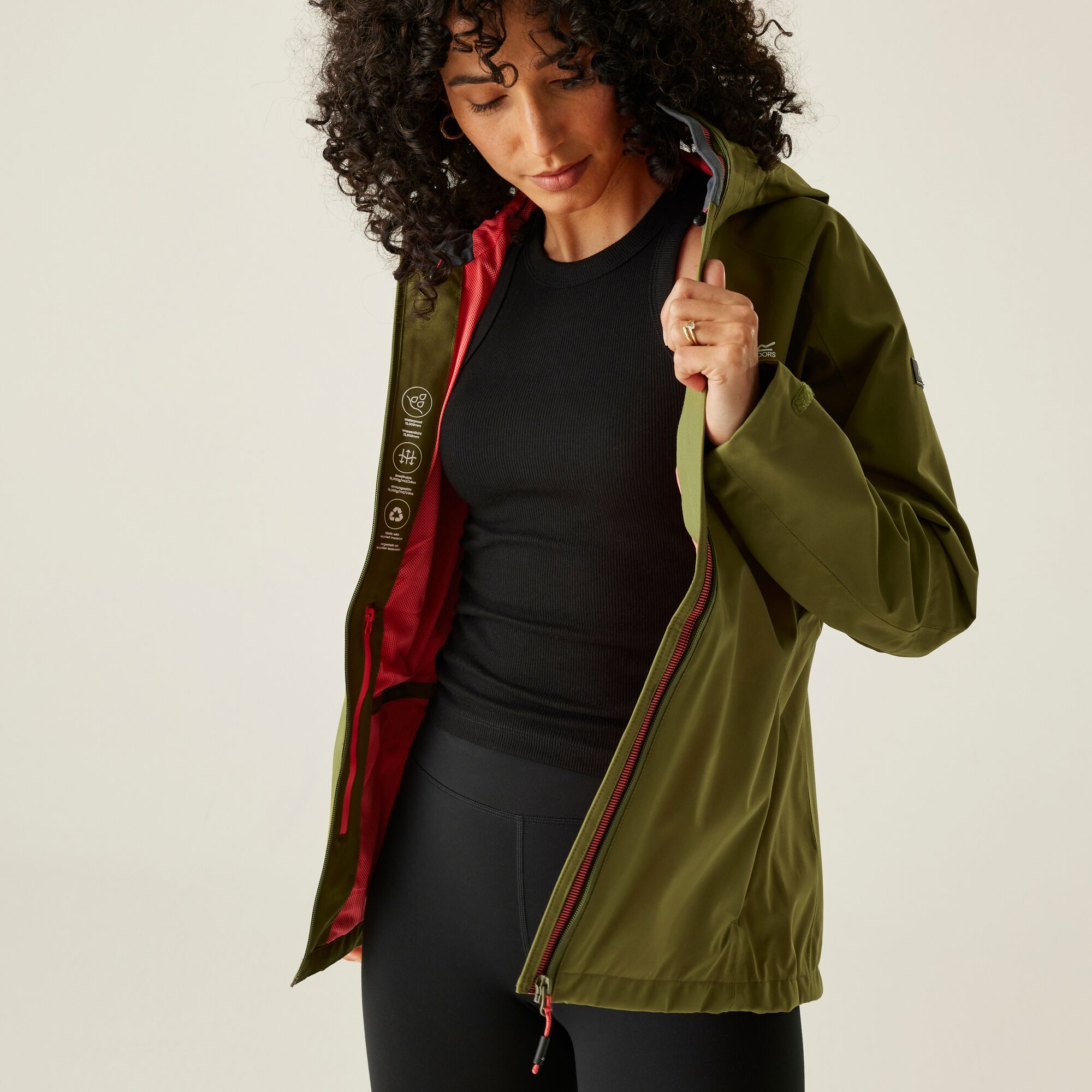 Dámská outdoorová bunda Regatta Birchdale je navržena pro aktivní ženy, které chtějí zůstat v suchu a pohodlí při každém počasí. Celorozepínací střih je doplněn hlavním zipem s krytkou u krku, aby nedocházelo k podráždění brady, a pevnou kapucí s kšiltem, kterou lze snadno nastavit podle potřeby. Regulovatelný spodní lem i manžety rukávů umožňují individuální přizpůsobení, kloubové rukávy zajišťují maximální volnost pohybu a plně podlepené švy spolehlivě brání pronikání vody. Vnitřní síťovaná podšívka zajišťuje odvod tělesné vlhkosti a zabraňuje pocení, takže bunda zůstává komfortní i při intenzivní aktivitě. Praktické uspořádání kapes zahrnuje dvě prostorné boční kapsy na zip, jednu kapsu na hrudi a menší vnitřní kapsičku na drobnosti, která je rovněž uzavíratelná na zip. Regatta Birchdale spojuje funkčnost, pohodlí a moderní design, a je tak ideální volbou pro turistiku, procházky v přírodě i každodenní nošení ve městě.