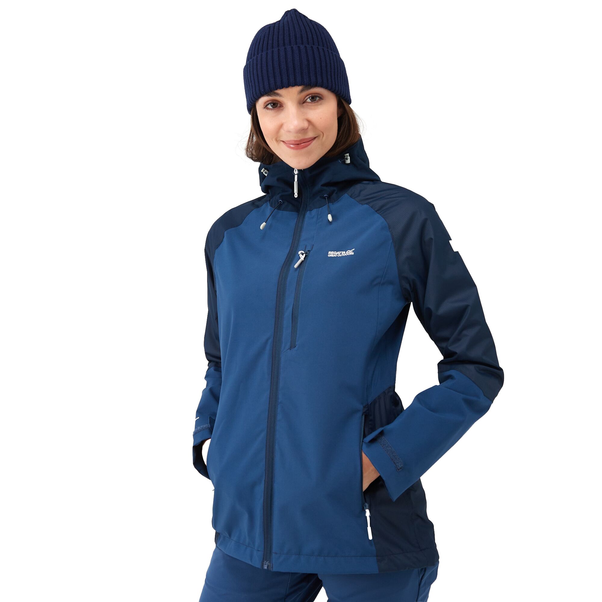 Regatta Highton Stret Jkt IV je dámská bunda vyrobená z voděodpudivého prodyšného materiálu Isotex 10.000, který je navíc opatřen vodoodpudivou povrchovou úpravou DWR. Tkanina je dostatečně elastická, takže nebudete nijak omezeni v pohybu. Bunda je celorozepínací, má podlepené švy a integrovanou nastavitelnou kapucí s kšiltem. Rukávy mají strečové manžety a spodní lem je nastavitelný. Na maličkosti se budou hodit 2 hlavní kapsy na bocích, 1 náprsní kapsa nebo 1 vnitřní bezpečnostní kapsa.