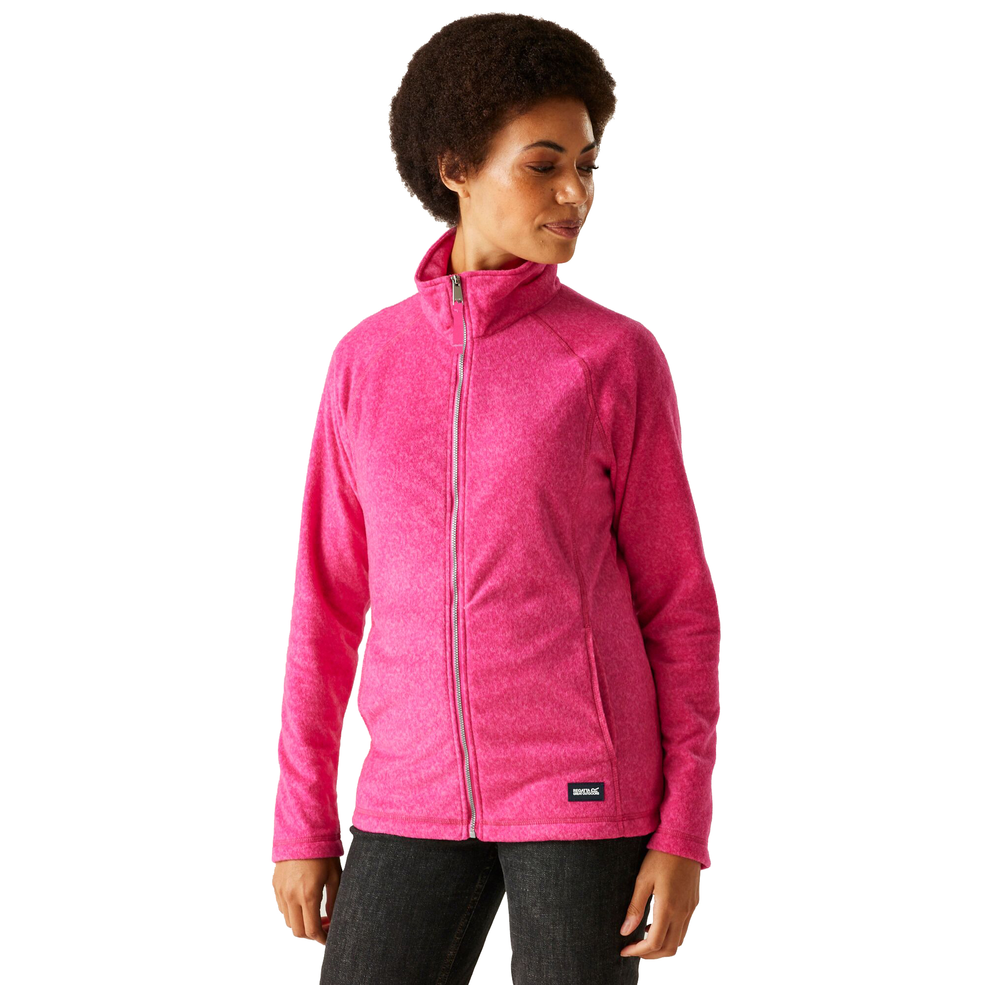Dámská outdoorová mikina Regatta RWA646/H38 Mayse FullZip v růžové barvě je skvělou volbou pro ženy, které hledají pohodlnou, hřejivou a univerzální vrstvu pro každodenní nošení i aktivní pobyt venku. Příjemný materiál poskytuje tepelný komfort a celopropínací zip usnadňuje regulaci teploty i praktické oblékání. Mikina se díky svému sportovnímu střihu snadno kombinuje s dalšími kusy oblečení a hodí se jak na turistiku, cestování, tak i do města. Moderní vzhled doplňuje decentní logo Regatta, které podtrhuje kvalitu a spolehlivost značky.