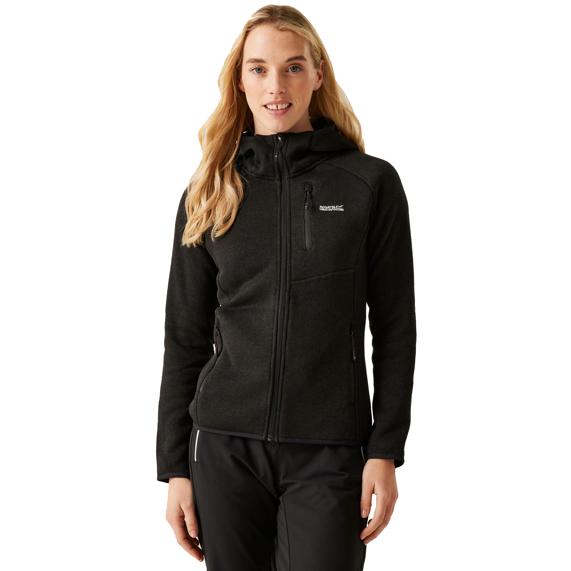 • detail REGATTA Wms Hood Newhill černá dámská outdoor mikina