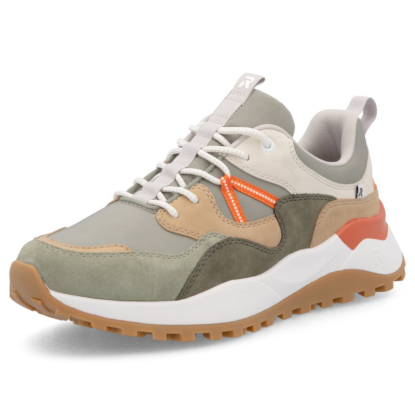 Moderní tenisky Rieker v kombinaci zelené, béžové, bílé a výrazné oranžové barvy jsou ideální volbou pro ty, kteří chtějí vyniknout a zůstat v trendu. Stylový vrstvený design v populárních barvách působí svěže a sportovně, zatímco robustnější podešev s výrazným vzorkem poskytuje skvélé pohodlí a jistý krok. Vrchní materiál obuvi je kombinace textilu a syntetiky, což zajišťuje odolnost a komfort. Vnitřní materiál je textil, který příjemně obepíná nohu. Vyjímatelná stélka je z paměťové pěny, vyměkčená pro maximální pohodlí při celodenním nošení. Syntetická a flexibilní podešev o výšce 3 cm poskytuje stabilitu a přizpůsobivost každému kroku. Tento model je v šíři H, což zajišťuje prostornější fit. Značka Rieker je známá svou technologíí ANTISTRESS, která odlehčuje, zvyšuje flexibilitu, pohlcuje nárazy a přizpůsobí se každému tvaru nohy, čímž zajišťuje optimální pohodlí během celodenního nošení.