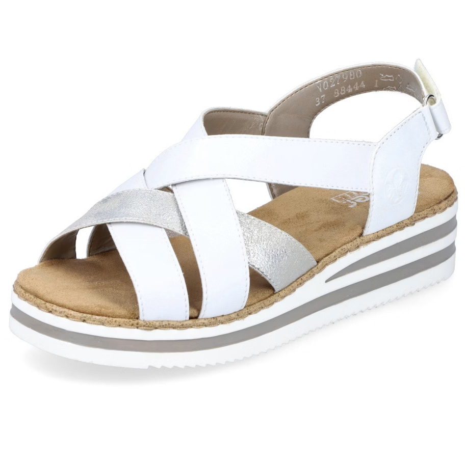 Stylové dámské sandálky značky RIEKER vylepší každý Váš outfit. Pásky jsou přes nárt stylově překříženy a zapínáním na suchý zip si obuv pohodlně přizpůsobíte dle svých požadavků. Měkká stélka je vyrobena z příjemného materiálu a podešev svým provedením a výškou dolaďuje celkový vzhled k dokonalosti. Tento model bude skvěle vypadat se sukněmi či dlouhými šaty.Technologie: Antistress – podešev je díky této technologii lehká, flexibilní, absorbuje nárazy při došlapu a snadno se přizpůsobí každé noze.