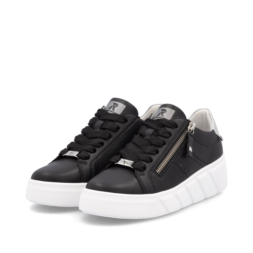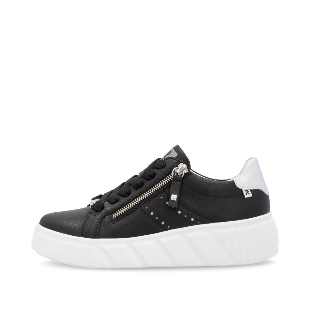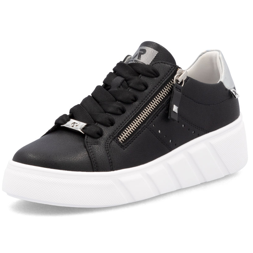 Dopřejte si sportovní eleganci s koženými teniskami RIEKER v černém provedení, které dokonale kombinují jednoduchost, styl a funkčnost. Ozdobný prvek na boční části a decentní logo značky dodávají modelu jedinečný vzhled, zatímco robustní bílá podešev nejen skvěle kontrastuje, ale zároveň efektivně tlumí nárazy při chůzi. Šněrování umožňuje pevné uchycení boty na noze, zatímco praktický zip usnadňuje obouvání. Vyjímatelná měkká stélka přináší maximální komfort i při celodenním nošení. Díky inovativním technologiím Antistress a Rieker Soft získáte lehké, pružné a pohodlné boty, které jsou ideální pro každodenní nošení.