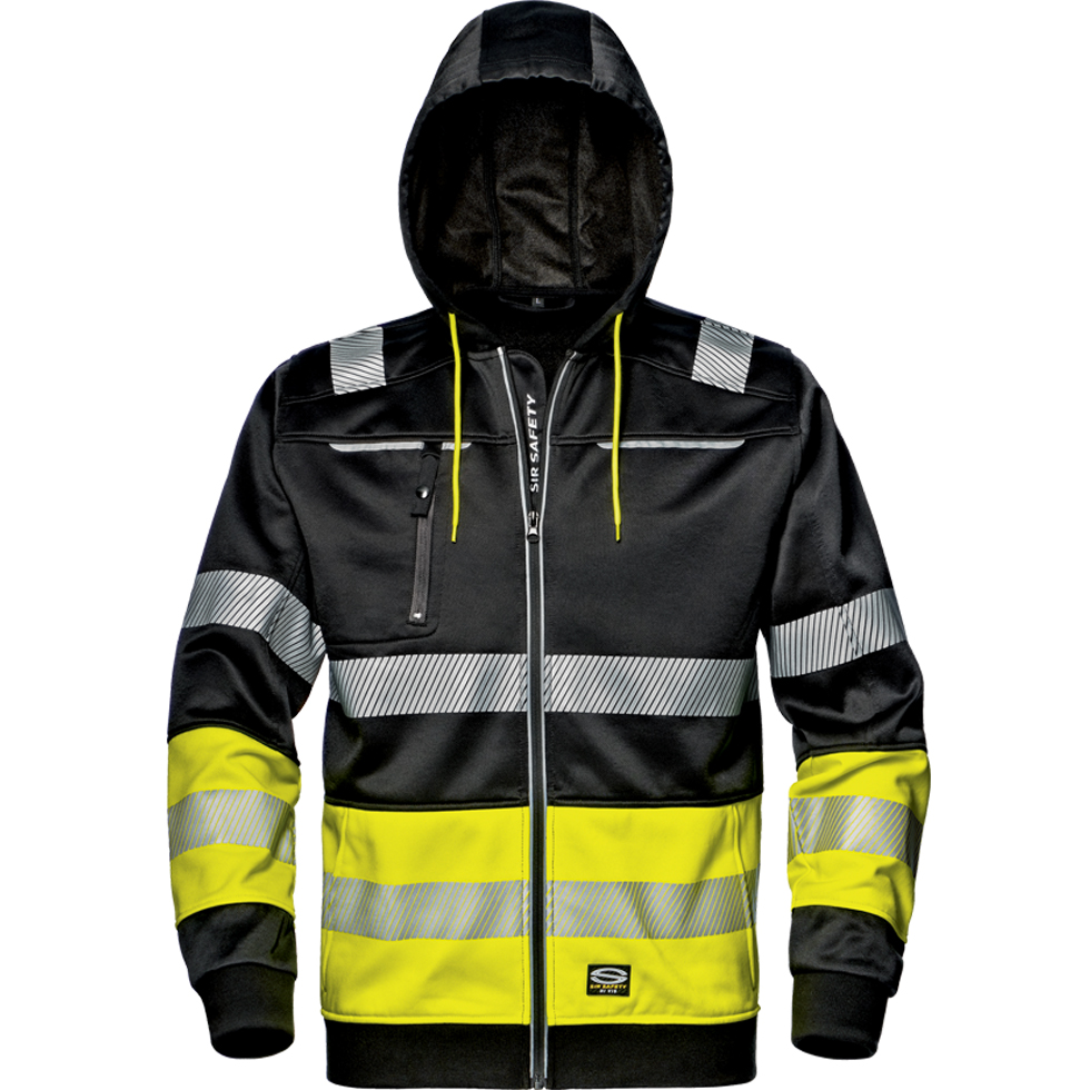 Mikina z 65 % polyesteru a 35 % bavlny o gramáži 300 g/m2. Má přední zapínání na zip, kapuci nastavitelnou šňůrkou, malou kapsu na pravé straně hrudi uzavíratelnou zipem a boční kapsy. Je vybavena tepelně zatavenými segmentovanými reflexními pruhy na ramenou, kolem hrudi, pasu a rukávů. Manžety a spodní lem jsou vyrobeny z žebrované úpletové tkaniny, která obsahuje 55 % bavlny a 45 % polyesteru. Produkt byl navržen a vyroben v souladu s nařízením (EU) 2016/425. Mikina je vhodná i na běžné nošení za snížené viditelnosti.