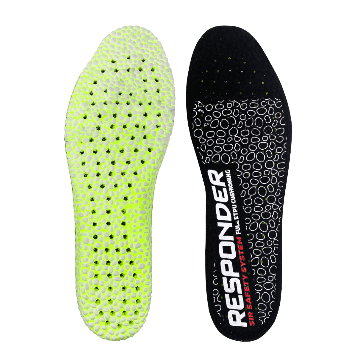 Vložka vyrobená ze speciální směsi Responder® spojující dohromady tisíce korálků z E-TPU s vysokou elasticitou a odolností. Podšité a perforovaný v plantární oblasti s pozoruhodnými protišokovými vlastnostmi.