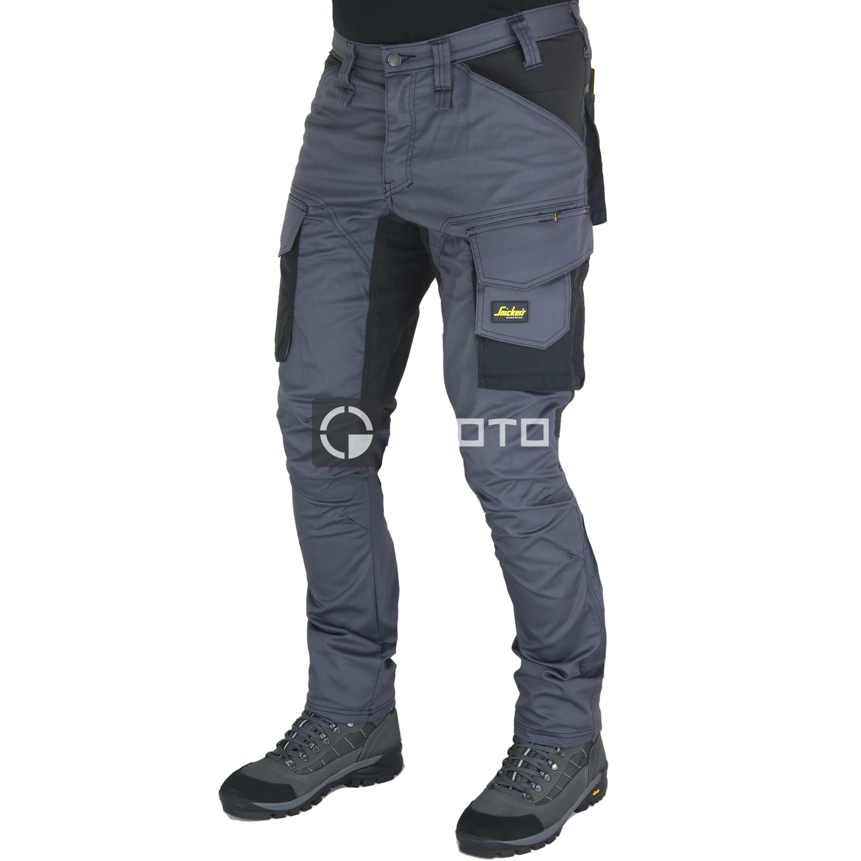 • detail SNICKERS Allround Stretch Slim šedé pánské pracovní kalhoty