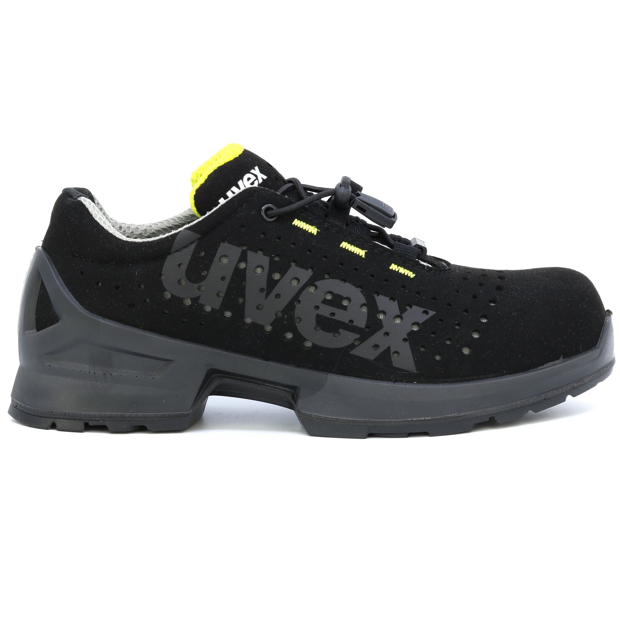 100% nekovová špička na ochranu prstů uvex xenova® nejnovější generace, kompaktní design, anatomický tvar, dobrá boční stabilita, bez tepelné vodivosti, nemagnetická. Vyrobeno za pomoci nové moderní technologie kopyta pro mimořádné pohodlí při nošení. Optimalizovaný komfort při nošení díky technologii uvex climazone. Prodyšný hydrofobní svrchní materiál ze špičkového mikroveluru s děrováním. Optimální odvětrávání díky materiálu s podšívkou ze síťoviny. Vyrobeno ze syntetických materiálů a díky tomu vhodné pro osoby s alergií na chrom. Individuálně nastavitelná, pružná tkanička s rychlou aretací. Téměř bezešvá konstrukce svršku bránící vzniku tlakových bodů. Odnímatelná komfortní stélka, antistatická, se systémem odvodu vlhkosti a doplňkovým odpružením paty i špičky. Měkce polstrovaný lem a polstrovaný jazyk. Speciální polyuretanová podrážka s dvojitou hustotou, nejlepším odpružením a velmi dobrou odolností proti skluzu, bez materiálů porušujících lak, jako jsou silikony, změkčovadla apod. Splňuje požadavky ESD: svodový odpor< 35 megaohmů.